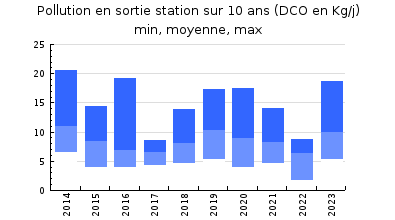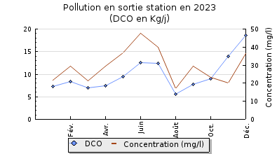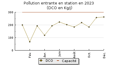 | DBO5 | 72 Kg/j | 48 % | 214 mg/l | 99 % | 0,7 Kg/j | 2,3 mg/l |