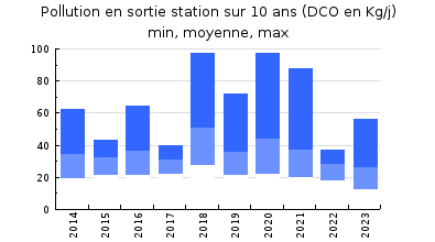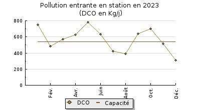 | DBO5 | 256 Kg/j | 46 % | 219 mg/l | 98 % | 6,1 Kg/j | 3,9 mg/l |