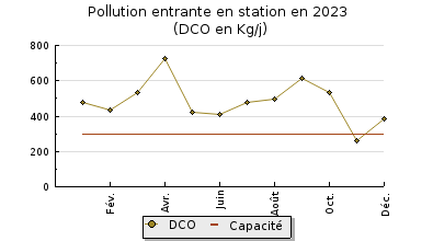 | DBO5 | 221 Kg/j | 67 % | 270 mg/l | 99 % | 2,8 Kg/j | 3,2 mg/l |