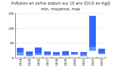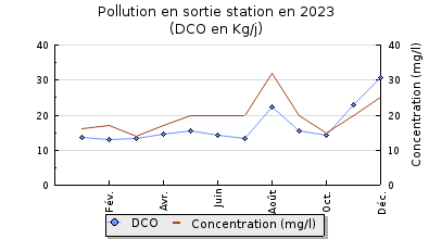 | DBO5 | 221 Kg/j | 67 % | 270 mg/l | 99 % | 2,8 Kg/j | 3,2 mg/l |