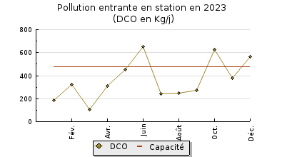 | DBO5 | 112 Kg/j | 31 % | 143 mg/l | 99 % | 1,5 Kg/j | 1,4 mg/l |