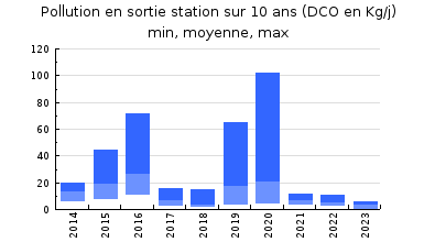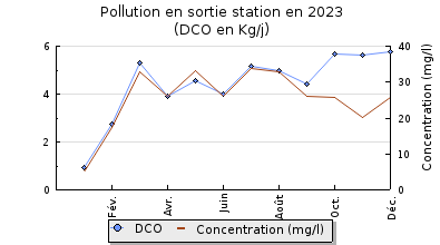 | DBO5 | 64 Kg/j | 53 % | 336 mg/l | 99 % | 0,6 Kg/j | 3,5 mg/l |