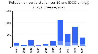 | DBO5 | 208 Kg/j | 50 % | 199 mg/l | 82 % | 37 Kg/j | 21 mg/l |