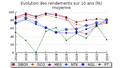 | PT | 8,0 Kg/j | 7,5 mg/l | 32 % | 5,4 Kg/j | 4,2 mg/l | |