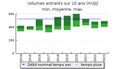 | Débit nominal temps sec : | 525 m3/j |