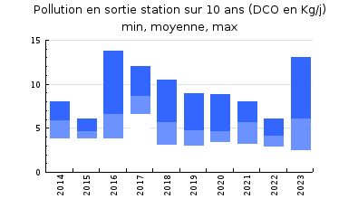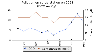 | DBO5 | 42 Kg/j | 46 % | 230 mg/l | 99 % | 0,3 Kg/j | 1,4 mg/l |