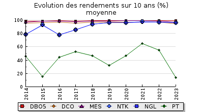 | PT | 1,5 Kg/j | 8,3 mg/l | 13 % | 1,3 Kg/j | 6,4 mg/l | |