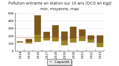 | MES | 23 Kg/j | 128 mg/l | 97 % | 0,7 Kg/j | 3,3 mg/l | |