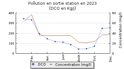 | DBO5 | 1 211 Kg/j | 81 % | 319 mg/l | 99 % | 12 Kg/j | 3,0 mg/l |