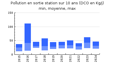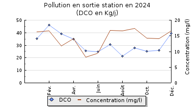 | DBO5 | 358 Kg/j | 46 % | 204 mg/l | 98 % | 8,0 Kg/j | 3,5 mg/l |