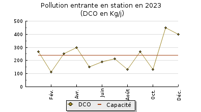 | DBO5 | 106 Kg/j | 59 % | 240 mg/l | 98 % | 1,7 Kg/j | 3,4 mg/l |
