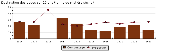 | Sous produits : Les boues (mousses et boues recirculées) sont extraites en permanence vers le silo épaississeur, qui fonctionne avec un drain. Le silo se rempli de 3,5 à 5m en 1 semaine, les boues épaissies comptabilisées envoyées ensuite vers les géotubes. La production de boues déclarée est légèrement inf à la théorique |