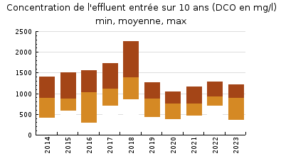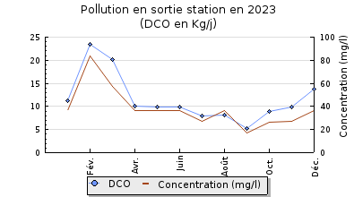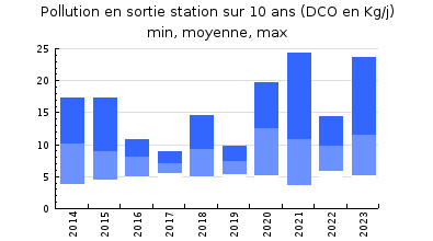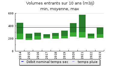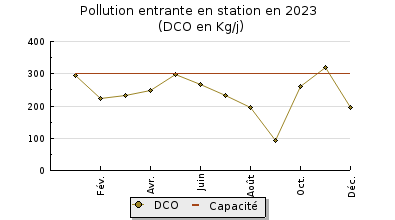 | Système de collecte : La station n'est pas en surcharge hydraulique. Des surdébits sont notés, mais modérés ces deux dernières années, avec des nombres de jour de dépassement de la capacité plutôt réduits. |