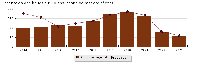 | Sous produits : 23/5 1. Programme d'extraction Les extractions vers le silo sont réalisées en mode automatique à raison de 7 minutes de marche pour 15 minutes d'arrêt quand la centrifugeuse fonctionne et 7 minutes de marche - 120 minutes d'arrêt quand elle est à l'arrêt. 2. Déshydratation Fonctionnement régulier de la centrifugeuse : 2 à 3 fois / semaine actuellement. Destination des boues déshydratées : centre de compostage sur site. Quantité dagents de floculation utilisés : 1800 kg/an 3. Point A6 : La filière boues a été réhabilitée : mise en service de trois pompes neuves (boues, polymère et polymère concentré) et de nouveaux variateurs. Les prélèvements déchantillons seffectuent en amont de la pompe à boues (22 à 23 % de siccité). Appareil de la station dépuration : Principe de la mesure : Electromagnétique Marque de lappareil : SIEMENS SITRAMS Référence : MAG 5000 Commentaires : Non vérifié car les données fournies à lagence de leau concernant ce point sont satisfaisantes. 9 Sous-produits Les refus de dégrillage (Piquette + station) sont évacués vers la filière délimination des ordures ménagères (incinération) par SITA Suez (Mouguerre 64). Destination : Veolia propreté à Bayonne. Les graisses et les sables sont hydrocurés par la société LABAT, respectivement 2 fois/an et 1 fois/an. Destination : usine de méthanisation Labat à Aire-sur-lAdour. 10 Déphosphatation physico-chimique Injection de chlorure ferrique dans le bassin d'aération à raison de 2 minutes par heure. |