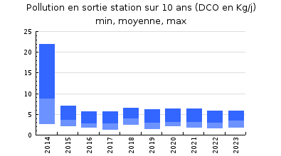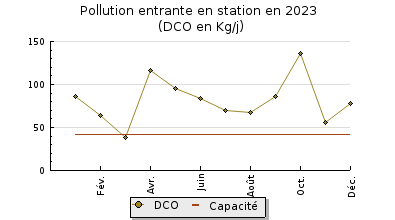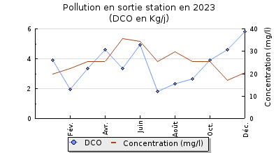 | DBO5 | 34 Kg/j | 29 % | 279 mg/l | 99 % | 0,4 Kg/j | 3,2 mg/l |