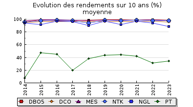 | PT | 1,2 Kg/j | 8,2 mg/l | 34 % | 0,8 Kg/j | 5,5 mg/l | |