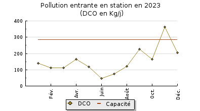 | DBO5 | 66 Kg/j | 46 % | 300 mg/l | 99 % | 1,0 Kg/j | 5,0 mg/l |