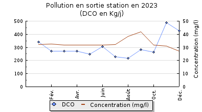 | DBO5 | 1 009 Kg/j | 45 % | 126 mg/l | 98 % | 21 Kg/j | 2,3 mg/l |