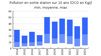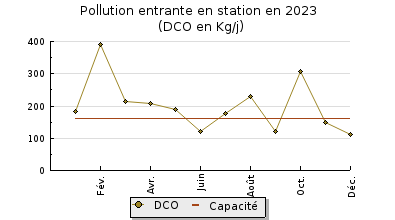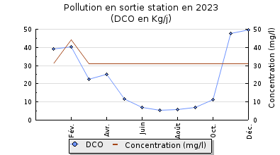| DBO5 | 68 Kg/j | 28 % | 147 mg/l | 97 % | 1,8 Kg/j | 2,4 mg/l |