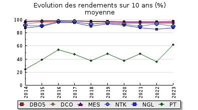 | PT | 7,6 Kg/j | 7,6 mg/l | 62 % | 2,9 Kg/j | 3,1 mg/l | |