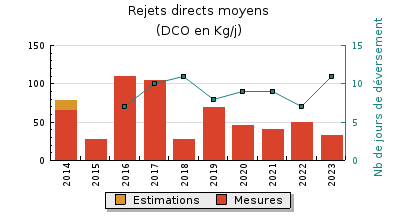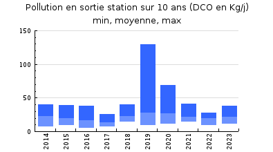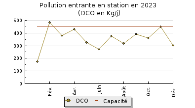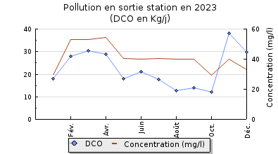 | DBO5 | 141 Kg/j | 65 % | 298 mg/l | 98 % | 3,5 Kg/j | 6,2 mg/l |