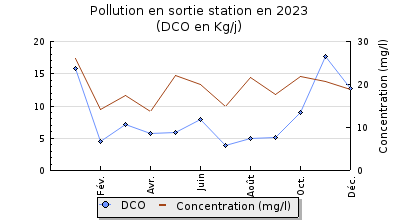 | DBO5 | 76 Kg/j | 63 % | 226 mg/l | 98 % | 1,7 Kg/j | 3,7 mg/l |