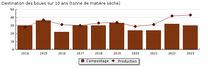 | Sous produits : 21/06 Les extractions de boues vers le silo sont réalisées à la demande. Les boues provenant de la station de Campagne continuent à être transférées sur la station mais elles sont dépotées au niveau du poste des matières de vidanges. 2. Déshydratation Passage de lUMD en février, mai. Le prochain est prévu en juillet. Destination des boues déshydratées : centre de compostage Thalie à Campet-et-Lamolère. Point A6 Pas dappareil de mesure. Principe : - le calcul des volumes extraits est réalisé avec le temps de fonctionnement de la pompe dextraction et le débit de celle-ci (60 m3/h), - le paramètre MES des boues recirculées est pris en compte dans le calcul des quantités de boues évacuées vers le silo. Remarque : les données transmises à lagence de leau qui en sont issues de ce calcul sont correctes. Les refus de tamisage sont évacués par le SIETOM de Chalosse vers la filière d'élimination des ordures ménagères. Il ny a pas eu de dépotage pendant ce bilan. Linjection seffectue dans le bassin daération, via un dégrilleur. Des boues de la station de Campagne sont régulièrement dépotés. Exceptionnellement, 40 m3 de celle dOnesse-Laharie ont également été amenés. |