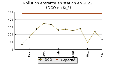 | Station d'épuration : 21/06 La station a reçu 669 m3 et 82 kg de DBO5 pendant le bilan, soit : ? 93 % de sa capacité hydraulique nominale de temps pluvieux, ? 34 % de sa capacité organique nominale. Ce bilan a été réalisé par temps orageux en fin de bilan (7.8 mm). Leffluent traité répond à la norme de rejet en vigueur. En point A2, 6 498 m3 été comptabilisé depuis le début dannée à ce jour (données Sandre) et aucun déversement pendant le bilan. Le roulement de la roue arrière du clarificateur a été remplacé le 16/01. Au moment de notre visite, il ny avait pas eu de problème particulier de fonctionnement depuis le début de lannée. Globalement, cette station bénéficie dun bon suivi et entretien. Concernant lautosurveillance : Létalonnage des débitmètres dentrée et de sortie station est satisfaisant. Labsence du code daccès à celui de sortie ne permet pas dintervenir pour régler laffichage de la hauteur deau dans le canal. Lors de la réunion avec la Police de leau en mai, il a été évoqué léventuelle possibilité de changer la carte mère. Les échantillonneurs ont correctement fonctionné. Le débitmètre du point A2 na pas été vérifié en raison de son accessibilité peu aisée. En ce qui concerne les boues, les données volumétriques issues dun calcul et transmises à lagence de leau sont satisfaisantes. Les différents équipements dautosurveillance sont répertoriés sur la planche-photos ci-après. La comparaison des résultats danalyses entre les deux laboratoires (exploitant et référent) na pas montré décart significatif. La transmission des données au format Sandre est satisfaisante. Date de réception des fichiers : 28/07/23. Le manuel dautosurveillance (voir ci-dessous) ne nécessite pas de mise à jour majeure. |