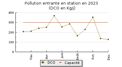 | DBO5 | 84 Kg/j | 56 % | 225 mg/l | 96 % | 3,1 Kg/j | 5,5 mg/l |
