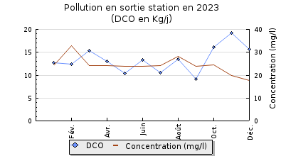 | DBO5 | 206 Kg/j | 39 % | 361 mg/l | 99 % | 1,7 Kg/j | 3,0 mg/l |
