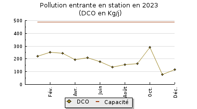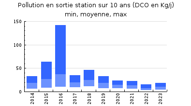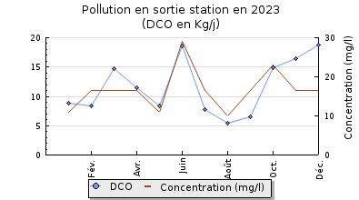 | DBO5 | 77 Kg/j | 31 % | 114 mg/l | 97 % | 2,3 Kg/j | 3,4 mg/l |