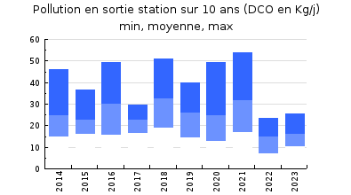 | DBO5 | 174 Kg/j | 32 % | 212 mg/l | 98 % | 2,8 Kg/j | 3,2 mg/l |
