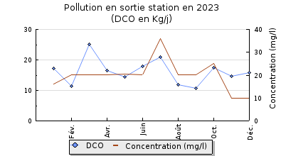 | DBO5 | 174 Kg/j | 32 % | 212 mg/l | 98 % | 2,8 Kg/j | 3,2 mg/l |