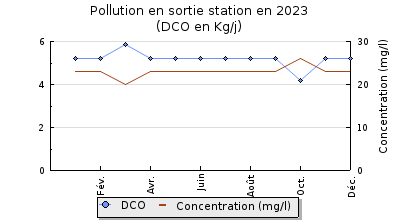 | DBO5 | 41 Kg/j | 40 % | 189 mg/l | 98 % | 0,7 Kg/j | 3,0 mg/l |