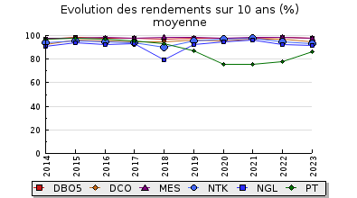 | PT | 8,8 Kg/j | 6,2 mg/l | 86 % | 1,2 Kg/j | 0,8 mg/l | |
