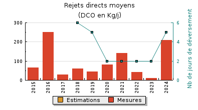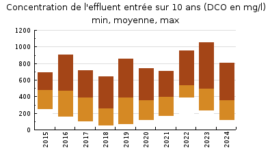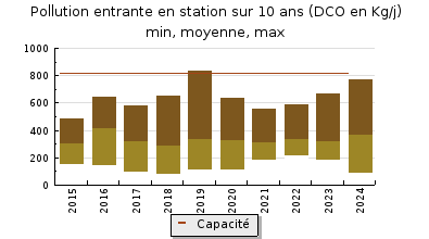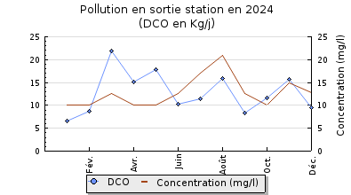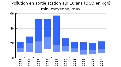 | Système de collecte : Les conditions hydrométéorologiques humides des deux premiers trimestres de l'année 2024 ont induit des charges hydrauliques notables et supérieures à l'exercice précédent. Les charges organiques enregistrées sont restées de faibles à modérées tout au long de l'année 2024 et même en période estivale. Aucun travaux n'a été effectué en 2024 sur le réseau de collecte. |