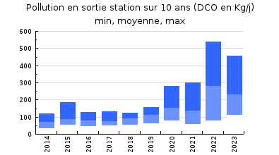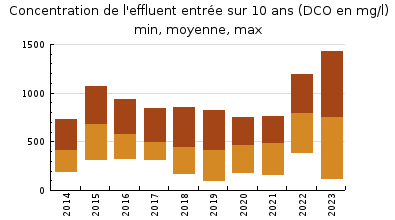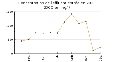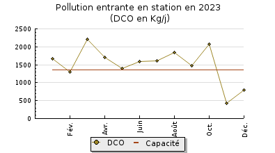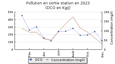 | DBO5 | 820 Kg/j | 101 % | 402 mg/l | 92 % | 63 Kg/j | 24 mg/l |