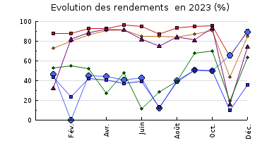 | Sous produits : Les extractions de boues ont été aussi régulières que possible tout au long de l'année. A l'avenir, les volumes de boues extraites seront calculés en fonction du temps de fonctionnement de la pompe d'extraction dont le débit a été jaugé. En parallèle, il faut continuer de suivre la concentration des boues de recirculation avec la même régularité. La production de boues est très similaire de celle de 2022. Les boues déshydratées continuent d'être acheminées vers une plateforme compostage du Puy de Dôme. |