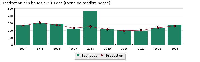 | Sous produits : Les boues déshydratées sont stockées sur le site du Flagit préalablement à leur épandage, elles ne sont plus hygiénisées. 273 T de MS de boues ont été épandus en 2023. Les données de production de boues correspondantes au point A6 ne sont pas communiquées. Il est important de mettre en place les équipements pour satisfaire la réglementation en la matière. |
