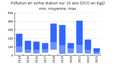 | DBO5 | 168 Kg/j | 38 % | 148 mg/l | 96 % | 6,2 Kg/j | 5,2 mg/l |