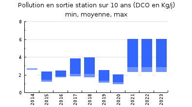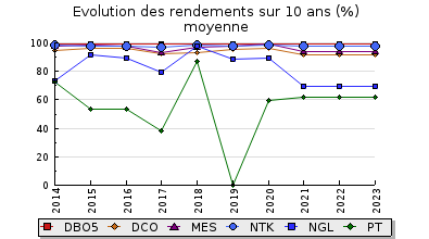 | DBO5 | 22 Kg/j | 23 % | 325 mg/l | 99 % | 0,2 Kg/j | 3,5 mg/l |