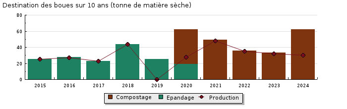 | Sous produits : Les extractions de boues ont été régulières toute l'année. La filière de déshydratation n'a pas connu de dysfonctionnement. Les boues déshydratées stockées en bennes continuent d'être transportées vers une plateforme de compostage dans l'Hérault. Une opération de réhabilitation de l'aire de stockage des boues déshydratées reste pertinente pour le maître d'ouvrage car le bâtiment actuel a subi d'importants dommages. En outre, le retour à une gestion des boues par plan d'épandage (retour aux sols) apparaît comme une solution beaucoup moins onéreuse. Cette année, la création d'un dispositif de mesure des volumes de boues extraits et de prélèvements a été finalisée puis mis en application au second semestre. Ainsi, il sera possible de répondre à l'exigence réglementaire pour la déclaration de production de boues (point A6) à compter de 2025. |
