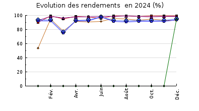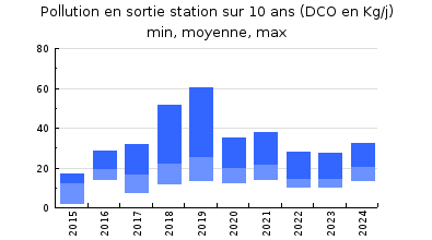 | Station d'épuration : Les charges organiques traitées se sont établies entre 7 et 77 % de la capacité de l'installation épuratoire en 2024. Les performances épuratoires ont été tout à fait satisfaisantes à propos des pollutions carbonées, particulaires et azotées. Tout cela résulte bien évidemment d'un niveau d'exploitation qui reste excellent tant sur la filière eau que sur la filière boues. A ce jour, il reste important d'opérer la remise en fonctionnement de l'unité d'injection de chlorure ferrique afin de pouvoir répondre aux exigences épuratoires en terme de déphosphatation. |