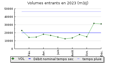 | Débit nominal temps pluie : | 46 300 m3/j |