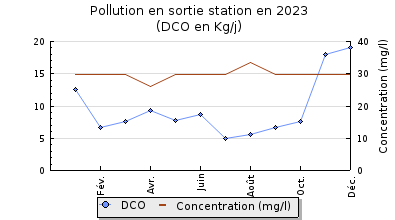 | DBO5 | 42 Kg/j | 37 % | 155 mg/l | 99 % | 0,6 Kg/j | 1,8 mg/l |