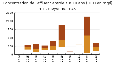 | Système de collecte : En 2023, le suivi départemental a été réalisé par 2 bilans 24h, les 25 mai et 10 octobre. Description : Selon le RPQS 2022, le réseau dArthez de Béarn comporte : - 18 km de canalisations dont 1 km dunitaire - 8 postes de relevage sur le réseau plus celui récemment mis en service à la station (suppression du PMC du stade) - 607 abonnés (649 sur la commune dont 42 raccordés au SA dHagetaubin) - Un bassin dorage (ancienne station) qui a été réhabilité en 2019 : vidange par siphonage. Aménagement dune lame déversante (non étanche) pour limiter le débit dirigé vers la station dépuration (calibrage de la vanne à coulisse non connu). Lors de fort débit, les effluents déversés alimentent le bassin de stockage. Fonctionnement : Lexploitant transmets des valeurs quotidiennes de débit pour les points entrée et sortie station ainsi que sur le déversoir en tête depuis le 11 mai (A3, A4 et A2). Les données recueillies dans ce cadre permettent de dire que : - La moyenne des débits parvenant aux ouvrages (du 11 mai au 31 décembre) est de 398 m3/j toute météo confondue. Le maximum mesuré dépasse 2250 m3/j (sous réserve que cette valeur soit dans la plage de mesure des appareils). - Entre le 11 mai et la fin de lannée, le point A2 a été actif 81 jours (débit supérieur à 10m3/j), avec près de 30 000 m3 déversés soit le tiers du flux collecté sur cette période. A partir de lanalyse du seul point A3 sur lannée, - le débit dépasse 400 m3/j (nominal de la station) pour 78 jours (66 en 2022), 61 jours avec un débit entre 400 et 600 m3/j (40 jours en 2022) et 17 jours (22 jours en 2022) avec des valeurs de débit encore plus élevées, jusquà 900 m3/j mesurés mi-janvier lors de pluies exceptionnelles (130 mm en 5 jours). - le débit moyen traité est de 277 m3/j (266 m3/j en 2022), avec de fortes variations en fonction de la hauteur de la nappe et de la pluviométrie (de 36 m3/j à 906 m3/j). - La moyenne de temps sec est de 222 m3/j (258 m3/j en 2022). Habituellement la moyenne toute météo confondue et la moyenne de temps sec sont significativement différentes. Ce nest pas le cas depuis 2021. Nos 2 bilans de mai et octobre se sont déroulés par temps sec avec respectivement 141 m3/j et 133 m3/j et une proportion deaux claires parasites permanentes respectivement de 30 et 20%. - Malgré la réorganisation de la collecte et la suppression du point de déversement au Fourcq près du stade, tout le débit ne parvient pas systématiquement à la station dépuration. Un écrêtement est encore possible au niveau du déversoir dorage situé à lancienne station (non mesuré). - Pour la période estivale (du 1er juin au 15 octobre), les débits admis en traitement sont moindres. La moyenne nest plus que de 192 m3/j toute météo confondue. - Par temps de pluie, les flux hydrauliques augmentent rapidement et significativement en raison dune part de la présence dun tronçon unitaire sur le réseau de collecte et de mauvais raccordements dans les parties séparatives du réseau, comme sur « la Carrère » par exemple. Flux polluant : Pour les 4 bilans de lannée 2023 (deux réalisés par nos soins, 2 par lexploitant), les concentrations de leffluent brut sont caractéristiques dun effluent domestique normalement concentré par temps sec (DCO variant de 590 à 700 mg/), le bilan davril a été écarté. Les charges polluantes mesurées varient de 570 EH à 764 EH. La valeur moyenne est de 640 EH. Il ny a pas eu de dépotage de matières de vidange dans les fosses de stockage au cours de nos bilans, cette donnée nest pas disponible pour les mesures dautosurveillance. Etudes et travaux : Le syndicat a lancé lactualisation du SDA sur lensemble de son territoire. La commune a entrepris en 2024 une étude (cabinet Merlin) visant à la déconnexion des eaux pluviales (publiques et privées) du réseau dassainissement. |