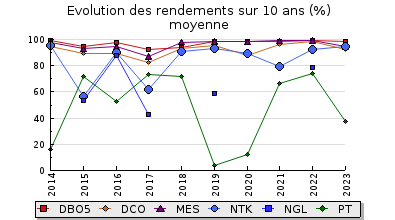 | PT | 2,1 Kg/j | 7,9 mg/l | 38 % | 1,3 Kg/j | 4,3 mg/l | |