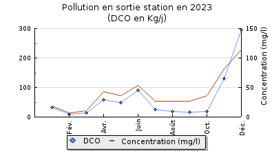 | DBO5 | 133 Kg/j | 37 % | 13 mg/l | 100 % | 7,5 Kg/j | 4,3 mg/l |