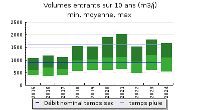 | Débit nominal temps pluie : | 1 600 m3/j |
