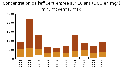 | Système de collecte : Le réseau dassainissement est assez long, desservant les communes dAndoins, Espoey, Limendous, Gomer, Soumoulou et Nousty, auxquelles sajoutent maintenant celles de Barzun et Livron (canalisation de transfert depuis lancienne station de Livron où un poste de relevage a été installé). Certains tronçons sont anciens de type unitaire (centre-bourg), les nouvelles antennes sont de type séparatif. Des extensions de collecte desservant des quartiers périphériques sont construites tous les ans selon un programme pluri-annuel porté par le syndicat deau et dassainissement Béarn-Bigorre. On dénombre 6 déversoirs dorage et 1 trop plein sur le poste de mise en charge de Nousty qui permettent de délester le flux en cas de surcharge hydraulique. Les principaux postes de relevage sont les suivants : - Poste de relevage «MATTETS SOUMOULOU » il restitue les effluents vers la station dépuration. - Poste de mise en charge « NOUSTY » : le fonctionnement de lélectrovanne est géré par des poires de niveau. -Poste de relevage HOURS : en service depuis février 2019. Il refoule les effluents vers le poste de relevage Livron. - Poste de relevage LIVRON : ce poste a été mis en service en aout 2018. Il est équipé dun système de désodorisation et dinjection afin de limiter la production dH2S sur le réseau. Ce poste est équipé de 2 pompes « Temps sec » et de 2 pompes « Temps de pluie ». Un bassin dorage y est annexé (ancien bassin séquentiel de Livron). Le suivi départemental 2024 a été assuré par et un bilan de performance sur 24 heures le 27 mars par temps pluvieux (3mm) et une visite avec analyses le 16 octobre par temps sec. A partir des résultats de lautosurveillance 2024, on peut indiquer que - le débit moyen journalier traité sur lannée toute météo confondue se situe à 1100 m3/j toute condition météorologique confondue, il est similaire à celui de 2023 (1200 m3/j). Par temps sec, le volume moyen est de 1028 m3/j. Le percentile 95 est de 2026 m3/j. - le déversoir en tête de station nest quasiment pas actif avec seulement 5 déversements observés sur lannée, le maximum se situant à 304 m3/j. le 4 février 2024. Ces déversements représentent seulement 0,15 des 403 134 m3 traités annuellement par linstallation. - Par temps de pluie, les débits collectés et parvenant à la station augmentent encore pouvant largement atteindre 1600m3/j la capacité nominale de temps de pluie des équipements (55 fois en 2024, 73 fois en 2023, 30 fois en 2022, 63 fois en 2021) et dépassent 2000 m3/j lors des fortes intempéries (13 fois en 2024, 12 fois en 2023 et 2022). De plus, lors des fortes périodes pluvieuses, il y a des délestages sur le réseau par les déversoirs et les trop-pleins de postes, tout le flux collecté narrive pas à la station. Pour limiter les déversements deffluent non traités et fiabiliser la collecte, un bassin tampon de 450 m3 a été construit sur le réseau. Dapprès les 12 mesures dautosurveillance, même par temps sec, les concentrations de leffluent brut sont caractéristiques des eaux usées domestiques moyennement concentrées (DCO moyenne = 385 mg/l) sauf pour lautosurveilance du 10 juillet avec une DCO de 899 mg/l. La charge organique à traiter varie de 1140 à 7169 équivalents habitants. La moyenne des mesures sur lannée 2024 est de 3180 EH Selon le RPQS 2023, le nombre dabonnés au système dassainissement est de 2021. A partir de la charge moyenne annuelle, on peut établir le ratio de 1,6 EH/abonné. Lors du bilan NAIADE de mars 2024, le flux parvenu en tête de station, avec 1 401 m3/j représente une charge hydraulique correspond à environ 9340 EH (sur la base 1 EH = 150 l/j). Ce volume quantifié est plus élevé que le volume moyen annuel (1100 m3/j). Les concentrations de leffluent brut sont caractéristiques des eaux usées domestiques très fortement diluées (DCO = 170 mg/l). Avec 70 kg DCO/j et 238 kg DBO5/j, la charge organique à traiter correspond à environ 1 580 équivalents habitants. |